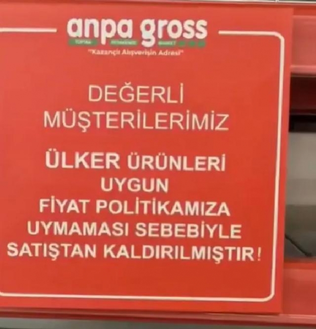 Market yönetimi tarafından boş rafların üzerine asılan yazıda ise "Ülker ürünleri, uygun fiyat politikamıza uymaması sebebiyle satıştan kaldırılmıştır" ifadelerine yer verildi. Rafların boş görüntüsü sosyal medyada büyük yankı uyandırdı.