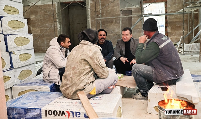 Başkan Balcıoğlu, saha ziyaretleri kapsamında Alibey Camii inşaatında çalışan emekçilerle de bir araya geldi. İşçilerin çay sohbetine eşlik eden Balcıoğlu, yürütülen çalışmalar hakkında bilgi aldı.