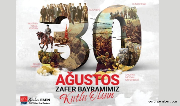 Mustafa Kemal Atatürk zaferin önemini, “30 Ağustos Savaşı, Türk tarihinin en önemli dönüm noktasını oluşturur. Milli tarihimiz çok büyük ve çok parlak zaferlerle doludur. Fakat Türk milletinin burada kazandığı zafer kadar kesin sonuçlu yalnız bizim tarihimize değil, dünya tarihine yeni bir yön vermekte kesin etkili bir meydan savaşı hatırlamıyorum” sözleriyle tanımlar. Cumhuriyet ve Demokrasi Sevdalıları, Mustafa Kemal için 30 Ağustos, askeri bir zafer olmanın da ötesinde “Kayıtsız şartsız milletin olacak egemenliğe” aralanan tarihi bir dönüm noktasıdır. Bu nedenledir ki tüm cumhuriyetçilerin ve demokratların, herkes için adalet ve huzur talep edenlerin ülkemizin içinden geçtiği bu karanlık dönemde, “Vazgeçtim” deme lüksü yoktur. Tek adam rejimine karşı kararlılıkla “Demokratik, laik ve sosyal bir hukuk devleti” ülküsünü savunacak; Atatürk’ün kimsesizlerin kimsesi olarak nitelendirdiği cumhuriyetimizi demokratikleştireceğiz. Sevgili Silivrililer, Bu duygu ve düşüncelerle, başta 30 Ağustos Zaferi’ni kazanan ve büyük dehasıyla ülkemizin geleceğine ışık tutan tek ve ebedi Başkomutanımız Mareşal Gazi Mustafa Kemal Atatürk olmak üzere tüm kahramanlarımız ile tüm terör şehitlerimizi rahmetle anıyor; gazilerimize sevgi ve saygılarımı sunuyorum."Bağımsızlığımızın simgesi 30 Ağustos Zafer Bayramımız kutlu olsun. Berker ESEN CHP Silivri İlçe Başkanı