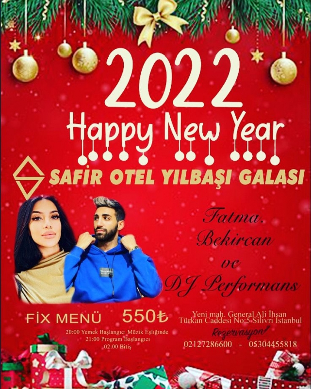 Yaklaşan yılbaşı için ilçedeki eğlence ve otellerin programları belli olmaya başladı. Müşterilerine en kaliteli ve en iyi hizmeti sunmak için birbiriyle yarışan işletmeler, menülerinin yanında geceye renk katacak aktiviteleride ince eleyip sık dokuyorlar. Safir Otel'in programı belli oldu Silivri'nin 4 yıldızlı otellerinden biri olan Safir, yılbaşı gecesi için müşterilerine çeşitli sürprizlerle birlikte uygun fiyaf politikasıyla göze çarpan mekan oldu. 2022'ye uygun ve kaliteli bir eğlence ile girmek isteyenlerin tercihleri arasındaki yerini alan Safir Otel'de muhteşem bir yemek menüsü ve eğlence müşterilerini bekliyor. Canlı müzik ve Dj perpormansı varMekanda erken saatlerde başlayacak olan sahne programında canlı müzikle sahnede Fatma Bekircan olacak. Daha sonra gecenin ilerleyen saatlerinde ise Dj Performansıyla eğlence devam edecek. Otel işletmecisi Mustafa Özçelik, "Yeni yıla müşterilerimizin istek ve talepleri doğrultusunda hazırlanıyoruz. Kaliteli, uygun, nezih bir ortamda keyifli bir geceyi müşterilerimize sunmayı arzu ediyoruz. İnşallah mutlu bir yeni yıla hep birlikte gireceğiz. Şimdiden yeni yılın hepimize hayırlı olmasını diliyor, bizleri terch eden müşterilerimize teşekkür ediyorum" dedi. İşte Safir Otel'in yılbaşı menüsü...