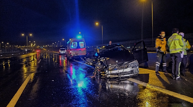 TEM otoyolu İstanbul istikameti Kınalı mevkiinde saat 23.00 sıralarında meydana gelen kazada 34 BDS 720 plakalı lüks otomobil bariyerlere çarptı. Sürücü Sezgin Y.'nin kontrolünü kaybetmesiyle bariyerlere çarpan otomobil, metrelerce sürüklendi.