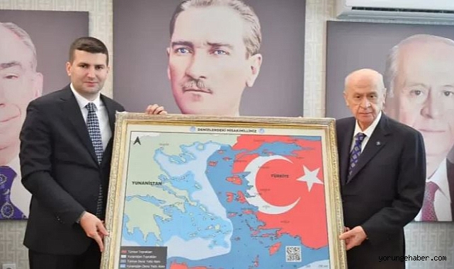 Ülkü Ocakları Eğitim ve Kültür Vakfı Genel Başkanı Ahmet Yiğit Yıldırım tarafından Milliyetçi Hareket Partisi (MHP) Genel Başkanı Devlet Bahçeli'ye hediye edilen 'Denizlerdeki Misak-ı Millimiz' adlı harita, NFT (Nitelikli Fikri Tapu) şeklinde düzenlendi.