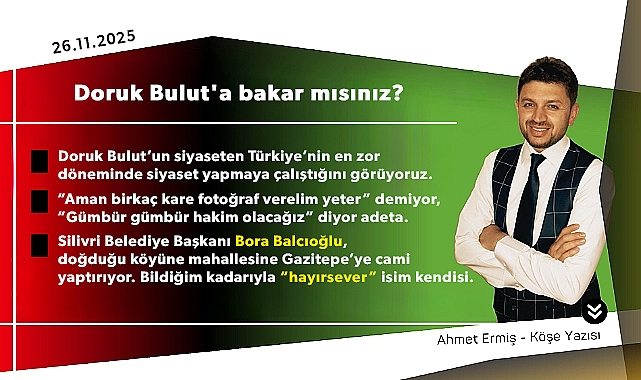 Silivri Belediye Başkanı Bora Balcıoğlu, doğduğu köyüne mahallesine Gazitepe’ye cami yaptırıyor. Bildiğim kadarıyla “hayırsever” isim kendisi. Arazinin bir bölümü de ailesine ait. Deprem riski nedeniyle geçen aylarda yıkılmıştı. Şimdi temel atma töreni düzenlendi. Yani Bora Başkan, Gazitepe Mahalle caminin yapımını üstleniyor. Allah razı olsun, önemli bir hayır işi. Açılış fotoğraflarında protokol mensuplarının büyük bir kısmını göremedim. Cami yapımında bari siyaset düşünülmemeli. Bu arada Bora bey sadece cami değil, adeta Gazitepe’nin altını üstünü getirmiş. Elektrik, su, Telekom ne var ne yok altyapısı üst yapısı yenileniyor Gazitepe’nin. Muhtarlık binası yıkılmış yenisi yapılacakmış. Valla kimse kusura bakmamalı. O kadar olacak. Helal olsun. Gazitepe’nin evladı kendisine yakışanı yapıyor. Hatta az bile yapıyor...